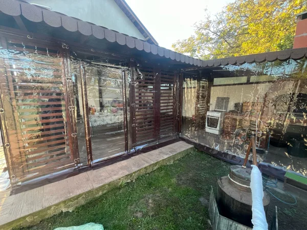 - Folie transparenta (folie cristal) – ideala pentru inchideri fixe, cu prindere in capse si bride;